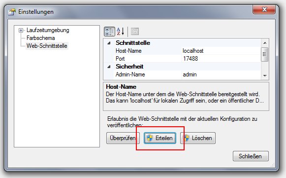 im Bereich "Web-Schnittstelle" auf die Taste "Erteilen" zu klicken.